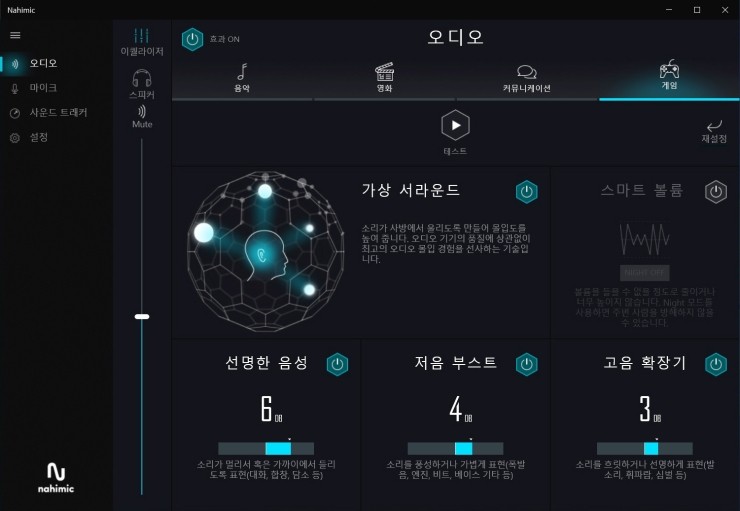 사운드 카드 구매 없이 비슷한 효과를 맛볼 수 있다는 점은 굉장히 큰 메리트 같습니다. 헤드셋이나 이어폰에 따라 들리는 소리가 다르고 사람마다 느끼는 주파수가 다르니 조금씩 만져보시면 색다른 사운드의 맛을 알게 될 겁니다. 저는 사블이나 나히믹이나 큰 차이가 없어서 누가 사운드 카드를 추천해달라고 하면 나히믹3 쓰라고 이야기해줄 거 같네요.